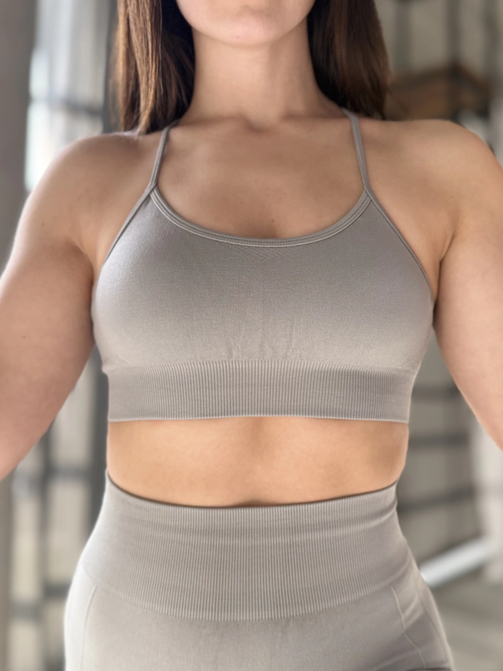 Diseñado para brindarte el balance perfecto entre comodidad, soporte y estilo. Su tela elástica y respirable se adapta a tu cuerpo como una segunda piel, ofreciendo libertad de movimiento y un ajuste seguro. El tono gris topo aporta un aire moderno y versátil, ideal para combinar con cualquier look.